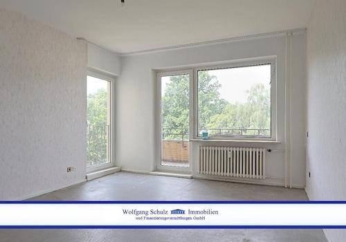 Diese exklusive und hochwertig sanierte Wohnung befindet sich in der 9. Etage der 1972 erbauten Wohnanlage. Die jeweiligen Wohnungen sind über das Treppenhaus oder auch den Fahrstuhl erreichbar. -Helles Wohnzimmer mit ...