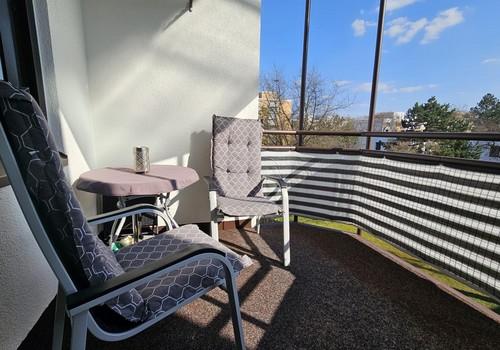 Gepflegte und gut vermietete 3-Zi.-Wohnung mit Balkon und sensationellem Ausblick im obersten Stock