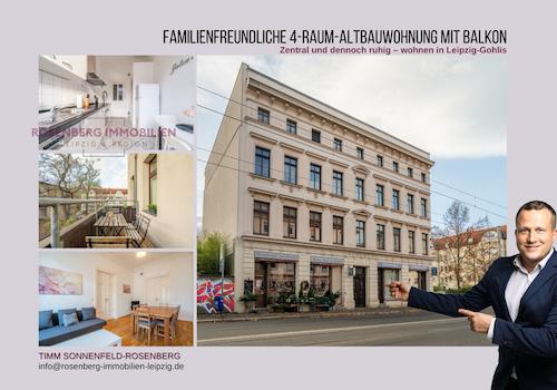Ihr neues Familienquartier: * 4 - Zimmer * Baujahr 1880 * Sanierung 1997 * Denkmalschutz * Lage: 1. OG * sofort bezugsfrei * Balkon mit Westausrichtung Gohlis gehört zu den beliebtesten Stadtteilen Leipzigs – ...