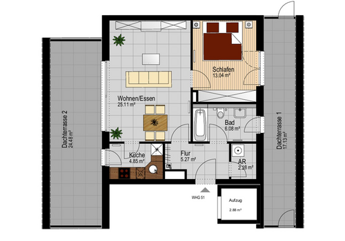 Sonnige 2ZKB Penthouse-Wohnung mit laufenden Mieteinnahmen