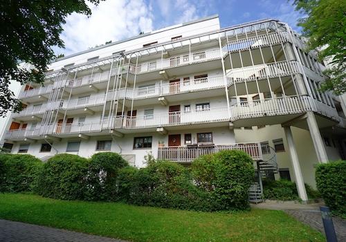 Die Wohnung im 2. Stock erreichen Sie per Aufzug und über einen Laubengang. Der Eingang zur Wohnung selbst befindet sich in einem weiteren Treppenhaus. Wohnzimmer und Schlafzimmer liegen auf der Seite des großzügigen, ...