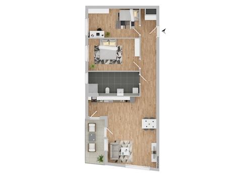 Die helle 3-Zimmer-Wohnung im 2. Obergeschoss verbindet angenehme Wohnfläche mit zentralem Stadtleben. Durch die gelungene Raumaufteilung stehen ein großzügiger Wohnbereich sowie zwei weitere Zimmer für unterschiedliche ...