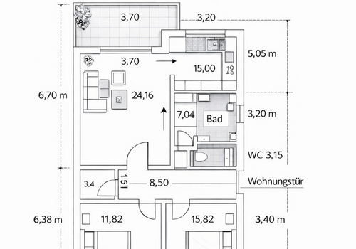 Wohnung mit Potenzial! Großzügige 1,5 Zimmer-Wohnung mit Dachterrasse & Garage in Schönaich!
