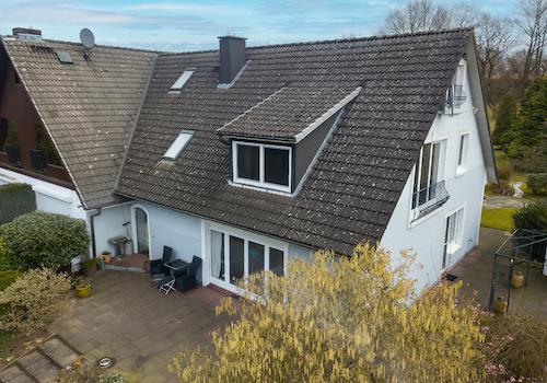 Das 1.234 m² große Grundstück mit Altbestand (versetzt in 1936/37 errichtetes Rotklinker-Satteldachhaus) und Nebengebäuden (Garage/Schuppen) bietet im hinteren Bereich einen herrlich naturbelassenen Teich, über den ...