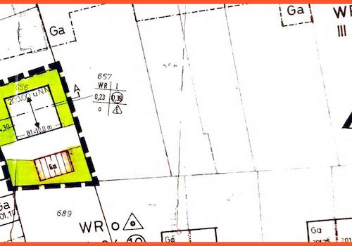 Erschlossenes Baugrundstück in ruhiger Wohnlage am Ende einer Sackgasse, derzeit mit 3 Garagen bebaut. Zusätzlich könnte ein 1-geschossiges Einfamilienhaus errichtet werden (siehe Ausschnitt aus Bebauungsplan).