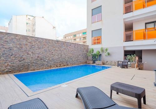 MAYMAR präsentiert diese neuwertige 1-Zimmer-Wohnung mit Gemeinschaftspool, nur 50 Meter vom Meer entfernt in Torrevieja, einer der begehrtesten Städte an der Costa Blanca – ideal für alle, die Komfort und Meeresnähe ...