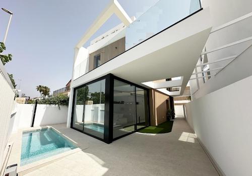 Exklusive Neubauvillen 300 m vom Strand entfernt in Torre de la Horadada~~Luxuriöses Wohnen an der Küste in bester Lage~Entdecken Sie dieses exklusive Neubauprojekt in Torre de la Horadada, einer der begehrtesten ...