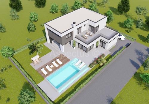 Haus | Istrien, Medulin Zum Verkauf stehen zwei neu gebaute, moderne Häuser in besonders ruhiger Lage in Medulin, auf einem grosszügigen Grundstück von 922 m². Jedes Haus besteht aus Erdgeschoss, Obergeschoss und einer ...