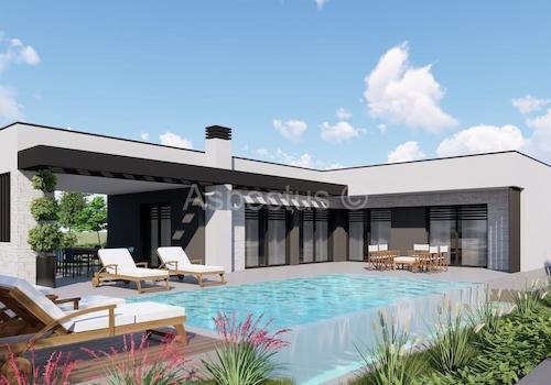 ISTRA | Modernes Haus auf einer Ebene mit Pool und Garten, mit fantastischem Blick auf Grünflächen und Weinberge. Diese beeindruckende Villa im Erdgeschoss bietet die perfekte Kombination aus Funktionalität und ...