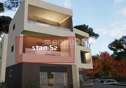 Im ersten Stock eines modernen Neubaus in Brodarica befindet sich diese geräumige Zweizimmerwohnung, nur 130 Meter vom Meer entfernt. Die Wohnung besteht aus einem Flur, zwei Schlafzimmern, einem Badezimmer sowie einem ...