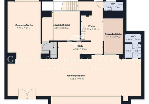 Diese geräumige Gewerbefläche mit insgesamt ca. 140 m² Fläche hat einen großzügigen Keller mit einer zusätzlichen Nutzfläche von ca. 45 m². Es gibt zwei WC-Anlagen, ideal für Gäste oder Kunden, eine Küchenzeile und ...