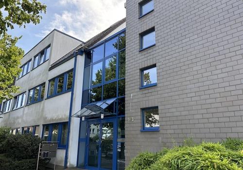 Bürogebäude mit 2 Etagen , 2.OG und Dachboden . grauer Laminatboden und modere graue Einbauschränke. Faltrollos und Aussenrollos vorhanden . 6 Stellplätze und Fahrradständer vorhanden