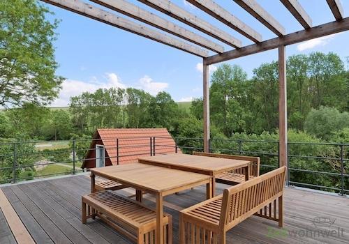 ### Please note the availability date! Bitte das Verfügbarkeitsdatum beachten! ### neu gebautes möbliertes Einfamilienhaus in EF-Marbach mit Fußbodenheizung, Phovoltaikanlage und Wärmepumpe; WLAN inklusive; Parterre: ...