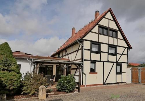 ### Please note the availability date! Bitte das Verfügbarkeitsdatum beachten! ### möbliertes Wohnhaus in Apfelstädt bei Arnstadt mit eigenem Grundstück; PKW-Stellplätze im Hof, überdachter Sitzplatz am Hauseingang; ...