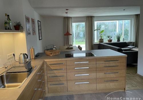 Schönes, komplett ausgestattetes Haus außerhalb von Peine. Mit Terrasse und Garten.