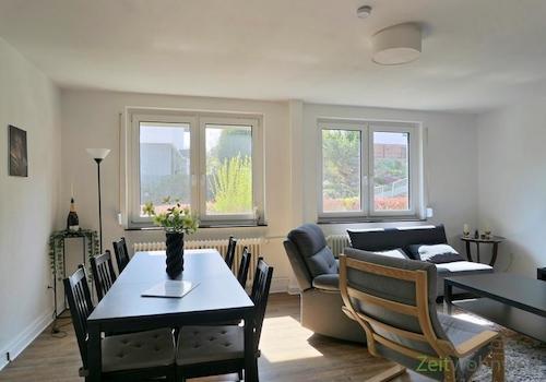 ### Please note the availability date! Bitte das Verfügbarkeitsdatum beachten! ### möblierte 3-Zimmer-Wohnung in ruhiger grüner Wohnlage am Stadtrand; WLAN inklusive; großes Wohnzimmer mit breiter Couch, Sesseln, ...