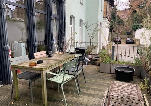 Die loftartige Wohnung befindet sich im Anbau eines 8-Parteienhauses. Im großzügig geschnittenen 3,80 m hohen Wohnraum mit integrierterm Küchenblock und Kücheneinbauten läßt es sich schön entspannen. An schönen Tagen ...