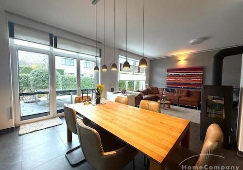 4 Zimmer Wohnung mit exklusiver Ausstattung. Wohnen: modern möbliert, großes Eckledersofa, Kamin und Zugang zum Garten Der Essbereich befindet sich ebenfalls im großen Wohnbereich, mit Platz für 6 Personen. Küche: ...