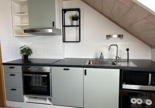 Willkommen in dieser modern eingerichteten Dachgeschosswohnung mit 2 Zimmern! Die Möblierung ist zeitgemäß und stilvoll, was der Wohnung einen modernen Charme verleiht. Die großzügige Küche mit Essbereich lädt zum ...