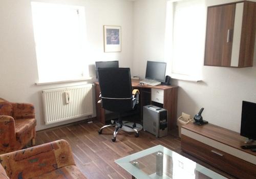 ### Please note the availability date! Bitte das Verfügbarkeitsdatum beachten! ### kleines möbliertes Apartment, ruhige Wohnlage, WLAN, heller Wohnraum mit Bett, Sofa, Kleiderschrank, TV und Miniküche, kleines Bad mit ...