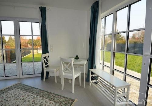 Apartment Nähe Campus Berlin Buch. Dieses Apartment ist neu erstellt und möbliert. Wohnraum mit Bett, Tisch, Schrank, offener Küche. Helles Duschbad. Terrasse, Außen-Jalousien, Fußbodenheizung. Internet und ...