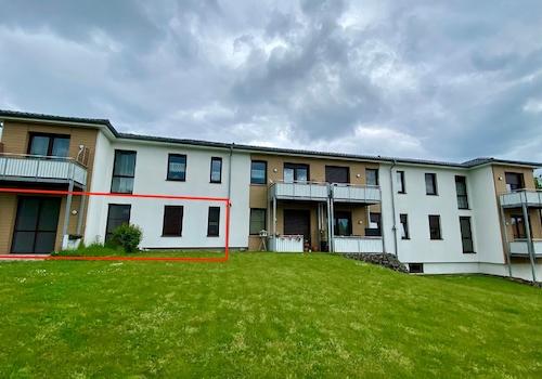 Die Wohnung bietet Ihnen auf ca. 81m² ein Wohnzimmer, ein Schlafzimmer, eine Küche sowie ein Tageslichtbad mit ebenerdiger Dusche. Auf die Terrasse gelangen Sie über den Zugang im Wohnzimmer. Alle Rollläden lassen sich ...