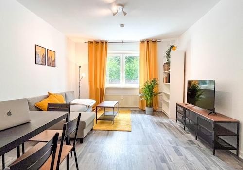 Willkommen in Deinem neuen Zuhause auf Zeit! Im EG eines ruhigen Mehrfamilienhauses befindet sich diese frisch renovierte 2-Zimmerwohnung mit barrierearmem Zugang (3-4 Stufen). Der optimale Schnitt der Wohnfläche von ...