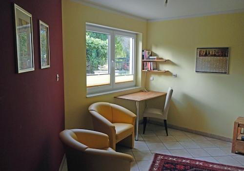Bad Godesberg, vollmöblierte 3 Zimmer NR Komfortwohnung, Küche, Diele, Bad, in Einzelhaus, an 1 Person, berufstätig, ideal für Pendler als Hotelalternative, Gartengeschoss (The fully equipped apartment is situated in ...