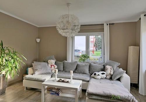 ### Please note the availability date! Bitte das Verfügbarkeitsdatum beachten! ### preiswerte möblierte Wohnung mit PKW-Stellplatz in Chemnitz-Ebersdorf; helles Wohnzimmer mit neuem Sofa, Sessel, Schrankwand und TV; ...
