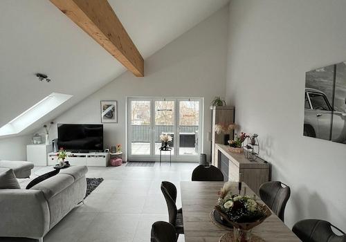 Betreten Sie das charmante Apartment über die elegante außenliegende Wendeltreppe, die Sie in eine helle und einladende Wohnfläche von 86m² führt. Der sehr großzügige Wohnbereich besticht durch seine offene Gestaltung ...