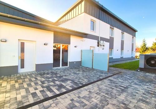 Erstbezug Objektart: barrierearme Wohnung Wohnfläche: 2- Raum- Wohnung mit 85 m² Mietbeginn: Oktober/ November 2025 Energiekennzahl: energieeffizient, KfW 40 Standard, Wärmepumpe mit Solarunterstützung Ein ...