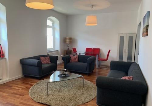 Diese ansprechende, modern möblierte 2-Zimmerwohnung befindet sich im 2.Obergeschoss eines ruhigen Mehrparteienhauses. Der Wohnraum mit bequemem Sitzbereich und Esstisch, der auch als Arbeitsplatz genutzt werden kann, ...