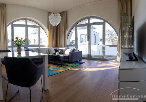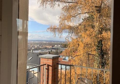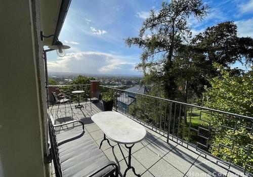20330G HomeCompany Dresden Möbliert/Furnished 2-Zimmer Apartment mit phantastischer Aussicht über die Stadt am Loschwitzer Elbhang, grosse Dachterrasse max. 2 Personen