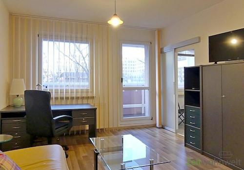 ### Please note the availability date! Bitte das Verfügbarkeitsdatum beachten! ### kleines möbliertes Apartment mit WLAN und Balkon; ruhige Lage auf der Gebäuderückseite; PKW-Stellplatz inklusive; großer Wohnraum mit ...