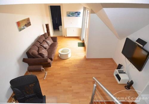AG131433 Helle Dachgeschoss-Wohnung auf ca. 85 Quadratmetern mit drei Zimmern. Vor Kurzem vollständig, neu möbliert. Waschmaschine, Badewanne, Küche inklusive aller Geräte, Internet, TV, Terrasse. Es gibt zwei ...