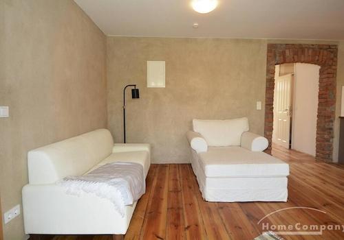 Top nagelneu sanierte Altbauwohnung im Vorderhaus. Die Wohnung verfügt über ein Wohnzimmer und ein Schlafzimmer mit einen Bett. Die Küche ist offen zum Wohnraum. Die Wohnung ist komplett ausgestattet mit 2 TV - Geräten ...