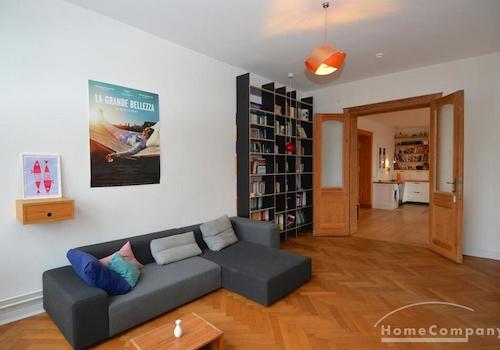 Helle, geräumige, vollständig möblierte und ausgestattete 2-Zimmer-Wohnung (ca. 80 m²) im 3. und obersten Stockwerk eines klassischen gepflegten Altbaus ohne Aufzug. Hohe Decken, Dielenfußboden. Vor 12 Monaten frisch ...