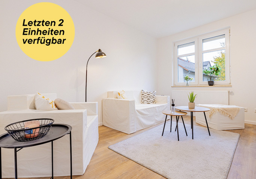 ### Please note the availability date! Bitte das Verfügbarkeitsdatum beachten! ### möblierte 2-Zimmer-Wohnung mit Dachbalkon in Lohfelden bei Kassel; WLAN und Grundreinigungsservice inklusve; großes Wohnzimmer mit Sofa ...
