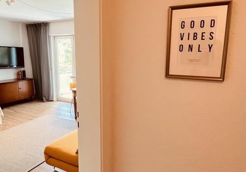 2,5 Zimmer Wohnung, großer Wohn- und Kochbereich, Bad und Gäste-WC, Grünanlage hinter dem Haus