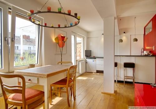 Geschmackvoll eingerichtete Wohnung im 4. Stock eines gepflegten Mehrfamilienhauses in sehr zentraler Lage von Flingern. Das Haus ist ein sanierter Altbau, der über einen Aufzug verfügt. Waschmaschine und Trockner ...