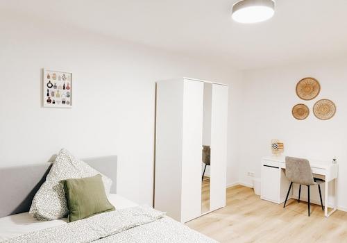 Dieses ausgesprochen schöne und helle Zimmer befindet sich im 3. OG eines 2019 erbauten Neubaus mit insgesamt nur vier Bewohnern. Besonders hervorzuheben ist die Lage in einem ruhigen familiären Wohnviertel welche aber ...