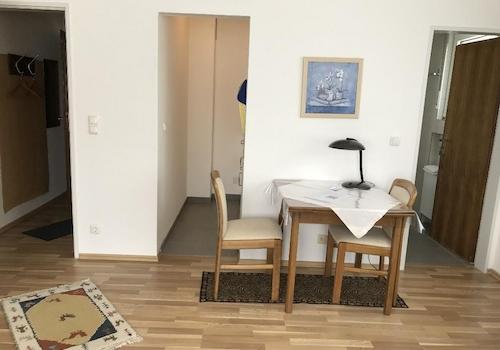Bad Godesberg, vollmöblierte 3 Zimmer NR Komfortwohnung, Küche, Diele, Bad, in Einzelhaus, an 1 Person, berufstätig, ideal für Pendler als Hotelalternative, Gartengeschoss (The fully equipped apartment is situated in ...