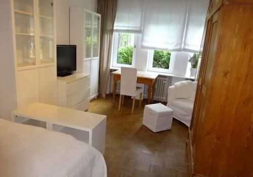 This wonderful maisonette is situated in an upmarket residential area in the Golzheim area of the city, with pretty much unbeatable views of the Rhine, with the Rheinwiesen meadows on one side and the marina on the ...