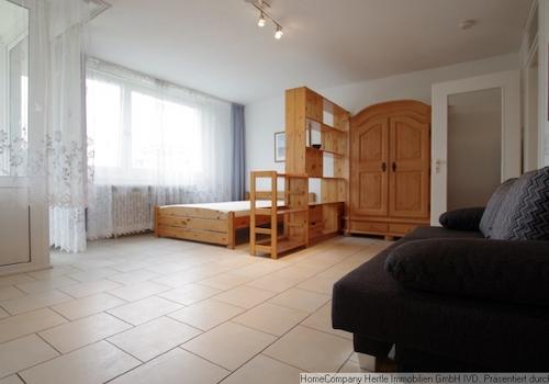 You´ll find an english translation at the end of the description. Großzügig und angenehm möbliert, aufgeteilt in Wohn-Ess-/Schlafbereich, seperater Küche, Bad mit Wanne/WC und Balkon. Die gesamte Wohnung ist gefliest. ...