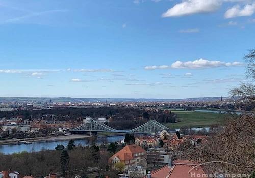 20330G HomeCompany Dresden Möbliert/Furnished 2-Zimmer Apartment mit phantastischer Aussicht über die Stadt am Loschwitzer Elbhang, grosse Dachterrasse max. 2 Personen