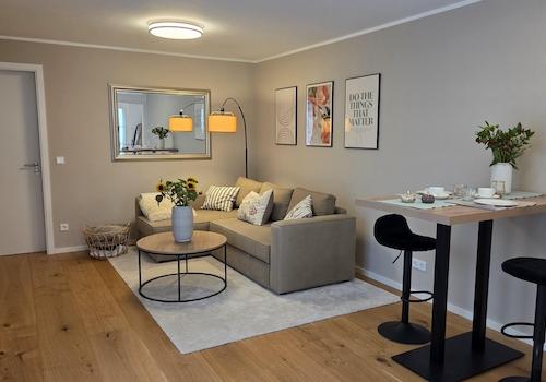 Die Wohnung – Neubau + Premium-Komfort auf 65 m² Diese Wohnung ist ein Top-Objekt für anspruchsvolle Mieter: - Alles neu: Neubau, frisch renoviert, modern möbliert - Großzügiges Wohnzimmer mit eleganter Lounge-Ecke, ...