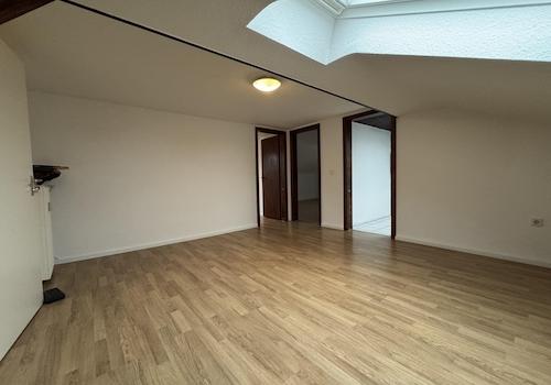 Helle Vierzimmerwohnung für kleine Familie oder WG. Die Wohnung ist frisch renoviert. Küche, Bad und WC sind gefliest, Wohn- und Schlafräume mit neuem Laminat ausgestattet. Durch die Dachflächenfenster ist die Wohnung ...