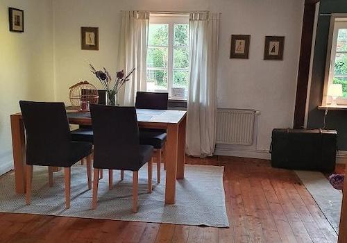3 Zi.-Einliegerwhg., möbliert, EG u. 1. OG, Kaminofen, Terrasse, in einem 1 Fam.-Haus. Warmmiete 1280,- € zuzügl. Strom und Wasser/Abwasser nach Verbrauch; entsprechend etwas höher bei 2 bzw. 3 Personen. W-LAN ...