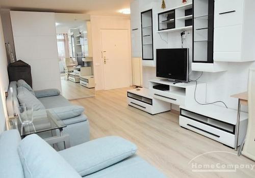 Moderne, helle Wohnung im bevorzugter Lage im Pelikanviertel. Mehrfamilienhaus, Baujahr 2000, 5. OG mit Lift. Möblierung neu, Parkett. Wohnzimmer mit Schlafsofa (für 2 Personen), Kleiderschrank, Couchtisch, Lowboard ...