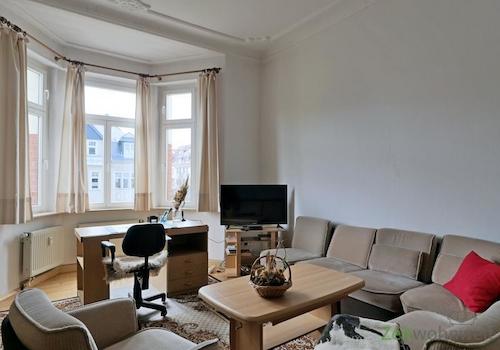 ### Please note the availability date! Bitte das Verfügbarkeitsdatum beachten! ### einfache möblierte Wohnung im OT Kaßberg in einer sanierten Altstadt-Villa; Aufzug im Haus; großes Wohnzimmer mit großer Eckcouch, ...